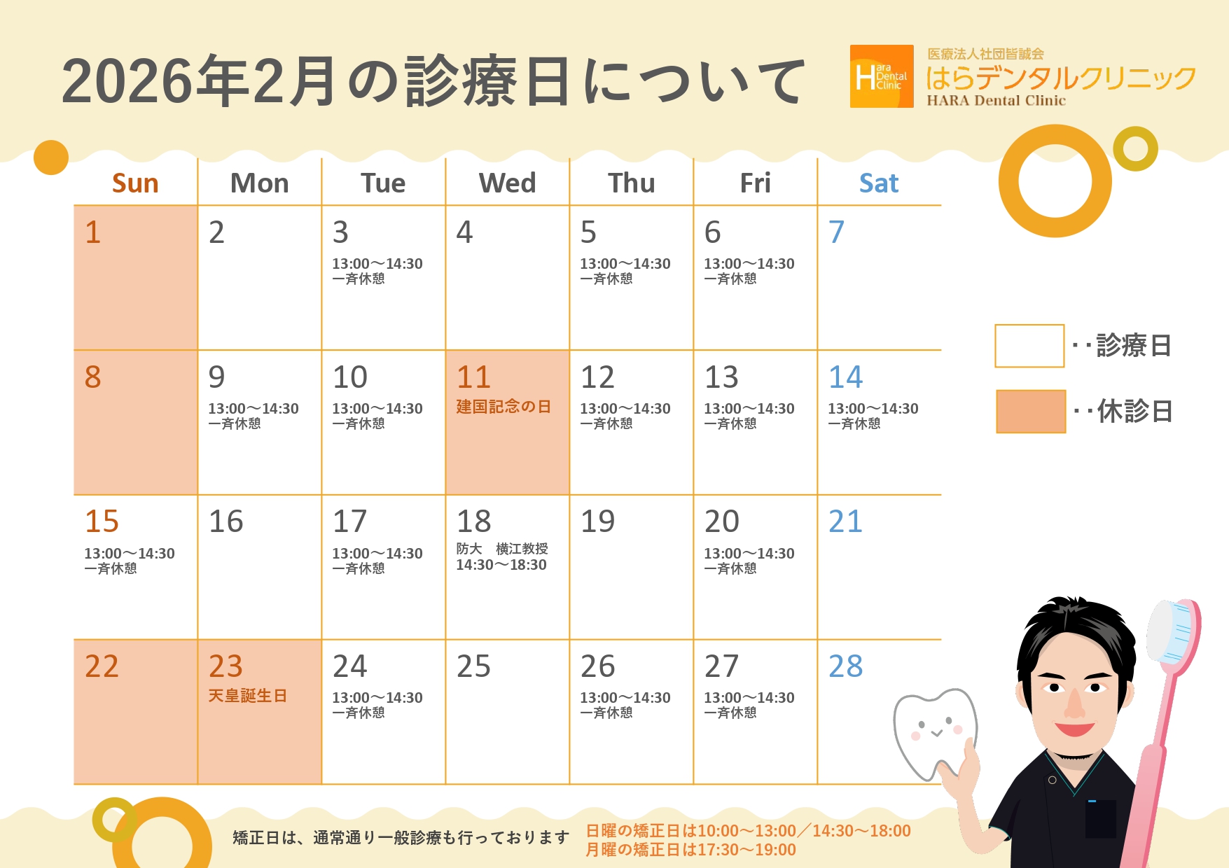 2026年2月の診療日となりますので、ご参考ください。