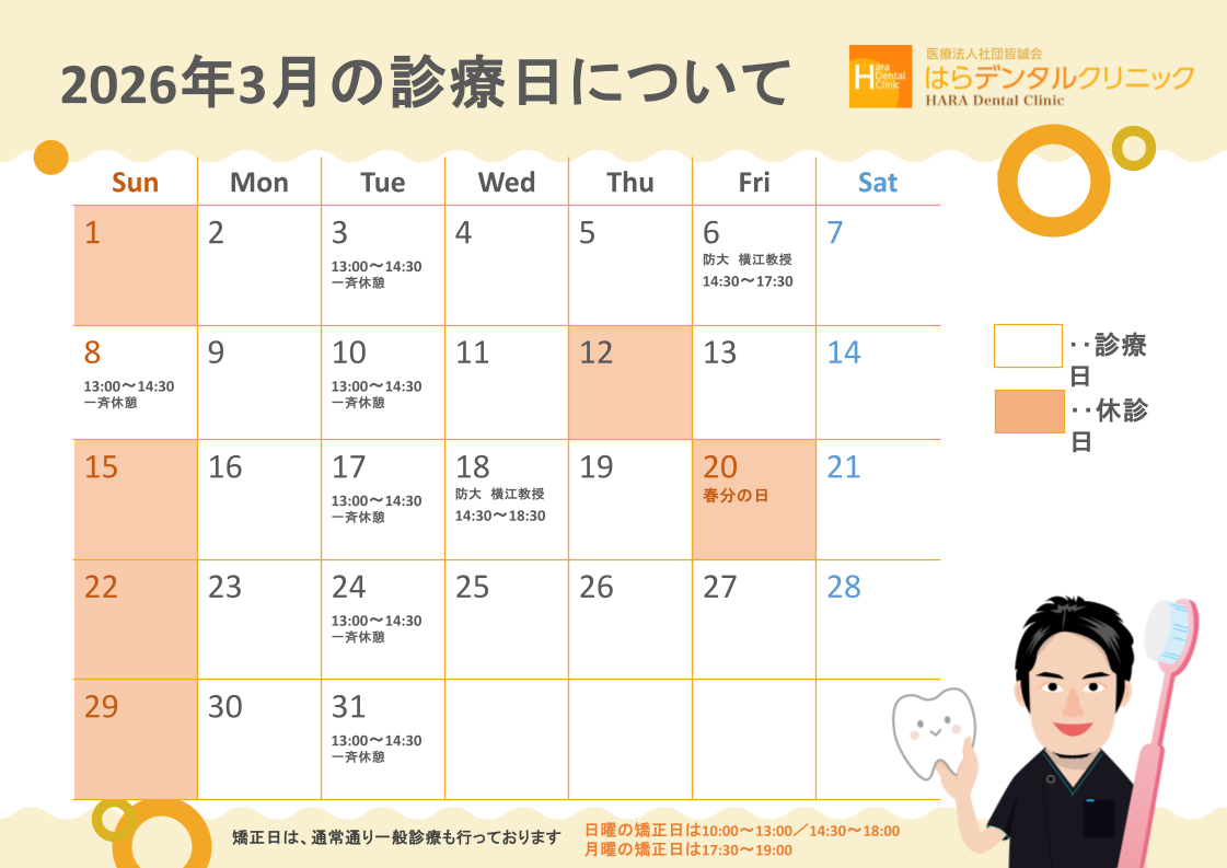 2026年3月の診療日となりますので、ご参考ください。